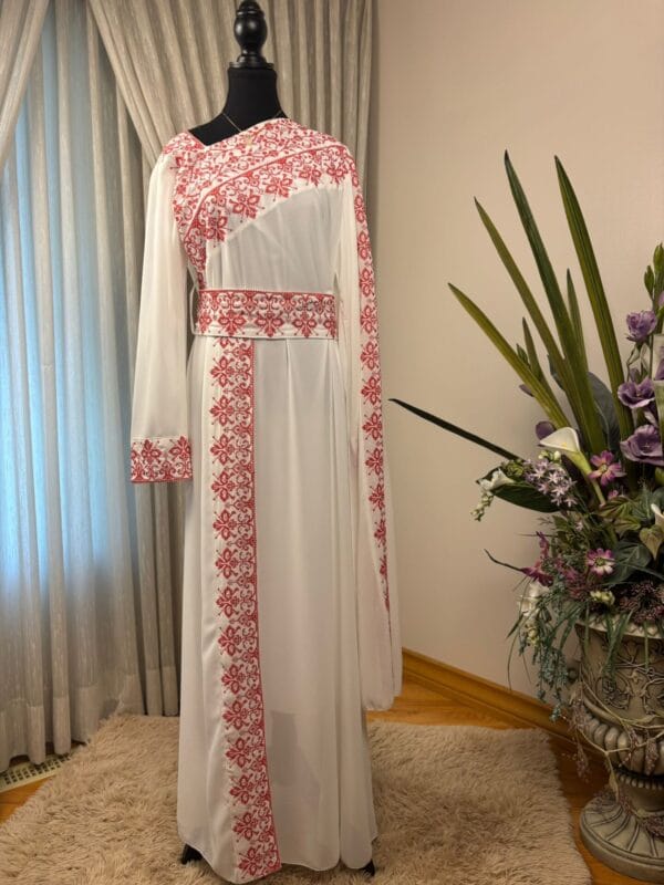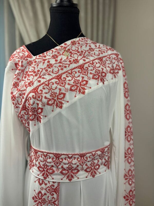 The Amal Embroidered Elegance Abaya blends tradition with elegance, featuring intricate embroidery that enhances its graceful silhouette for a timeless look.