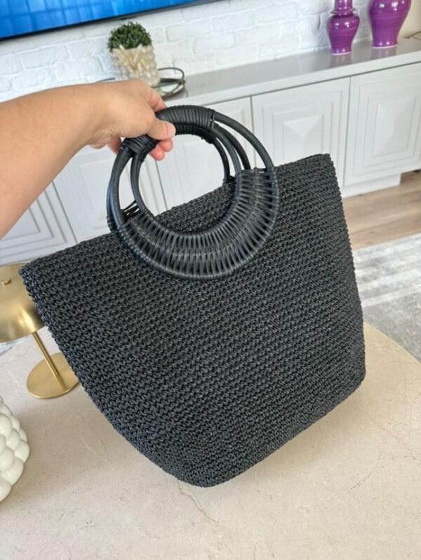 Introducing the Handmade Crochet Black Tote Bag, an exquisite blend of traditional Turkish craftsmanship and modern elegance. Carefully handcrafted with high-quality paper raffia fibre, this bag boasts a tightly woven, uniform crochet pattern that ensures durability and style. The sturdy bamboo ring handles, finished in deep black, provide a chic yet functional touch, making it perfect for daily outings, office wear, or evening gatherings. With its spacious interior and timeless design, this tote is the ideal companion for those who appreciate handmade artistry and sustainable fashion.