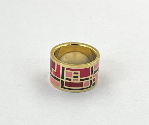 Enhance your hijab with this 18K gold plated ring featuring a modern geometric design that beautifully blends the elegance of gold with the softness of pink. Crafted to add a refined and sophisticated touch to your attire, this accessory perfectly balances tradition and contemporary style.