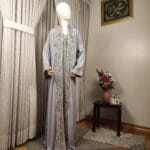 Discover the refinement and splendor of the Moroccan Royal Elegance Traditional Kaftan, an exceptional piece that embodies the authenticity and luxury of Moroccan tradition. Crafted from high-quality, flowing fabric in sophisticated color combinations, this kaftan is adorned with delicate silver embroidery and shimmering embellishments along the edges, adding a regal touch to the entire look.