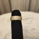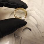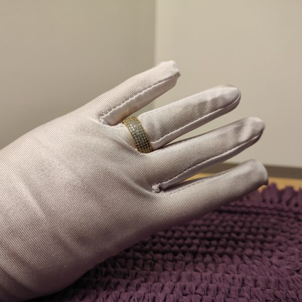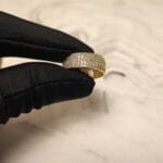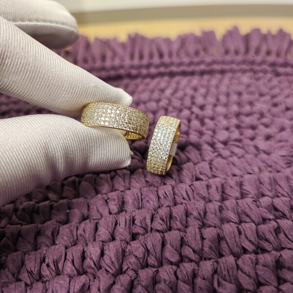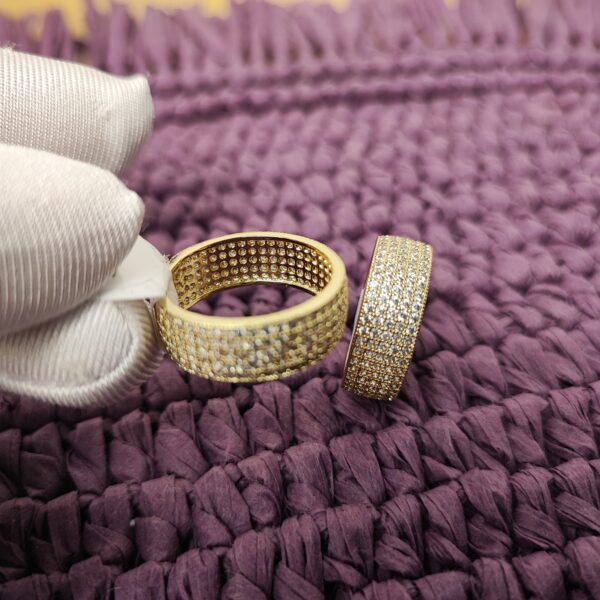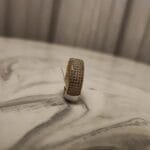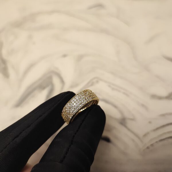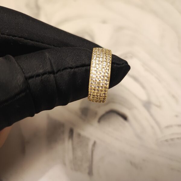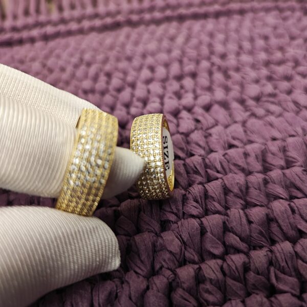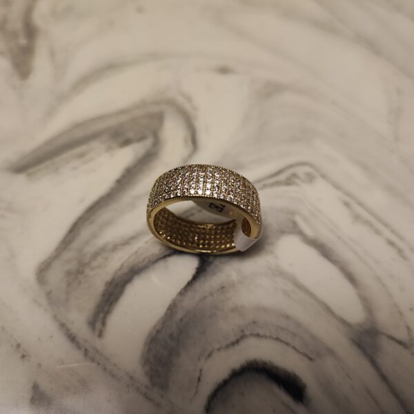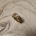 The Lustre Pavé Ring is a refined statement piece, handcrafted in Turkey with a brass base and 22K gold plating. Its surface is adorned with natural sparkling zircon stones in a pavé setting, creating a dazzling, sophisticated look for any occasion.