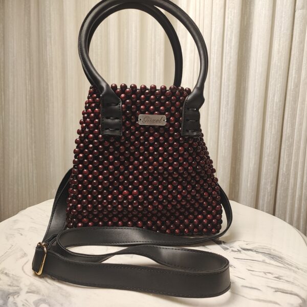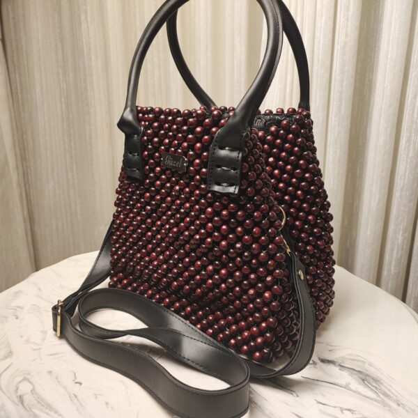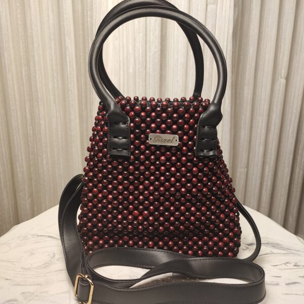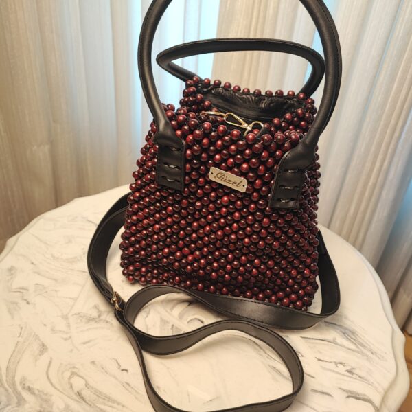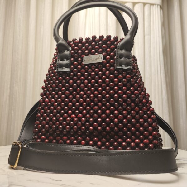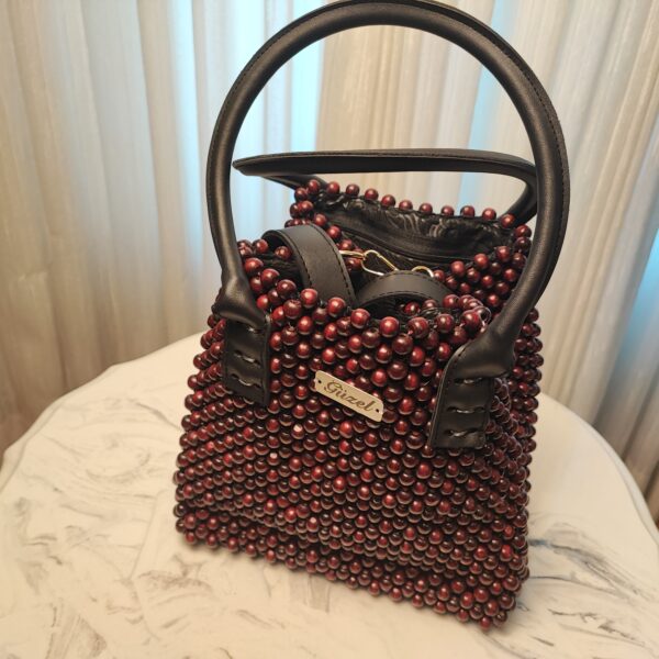 Inspired by its rich, dark red wooden beads and sleek black leather details, this bag exudes timeless elegance and natural beauty—perfect for those who appreciate a balance of rustic charm and modern sophistication.