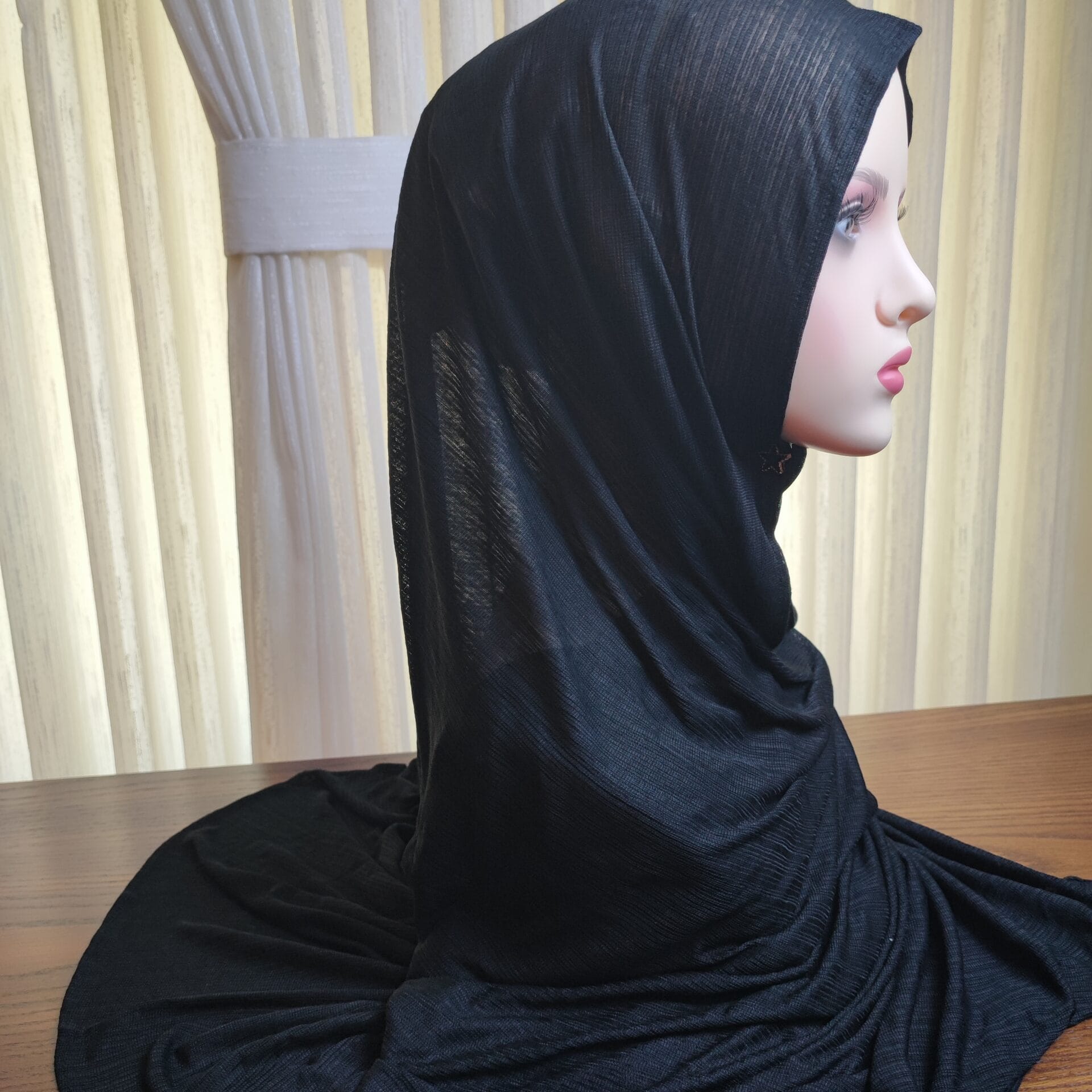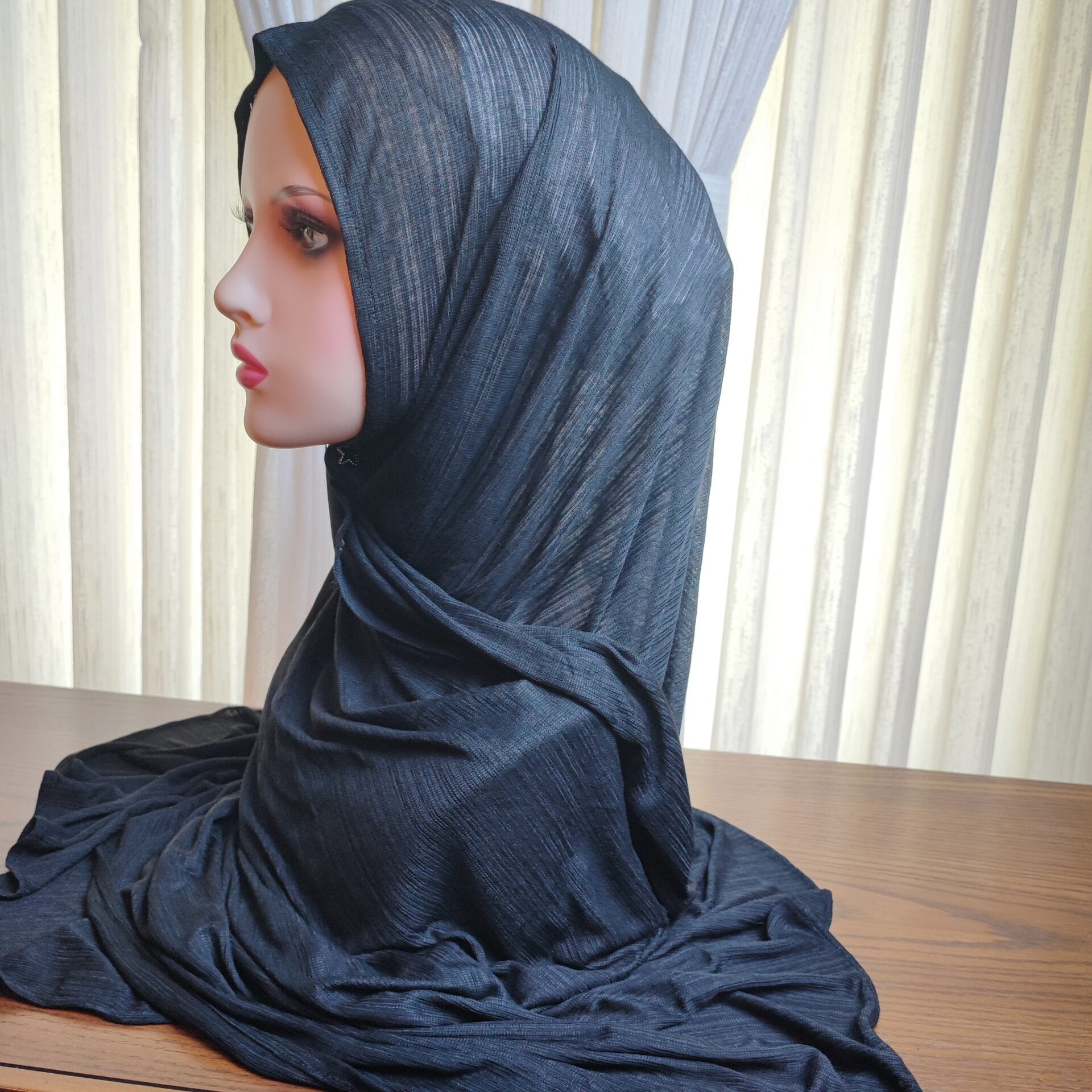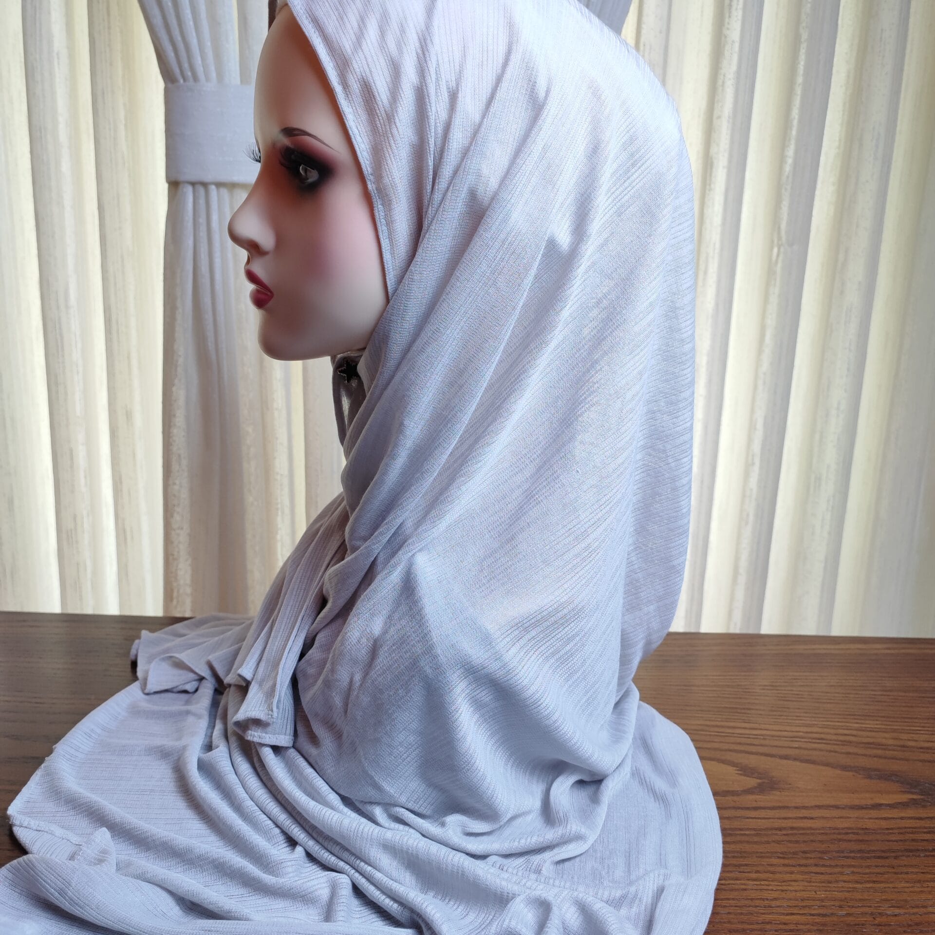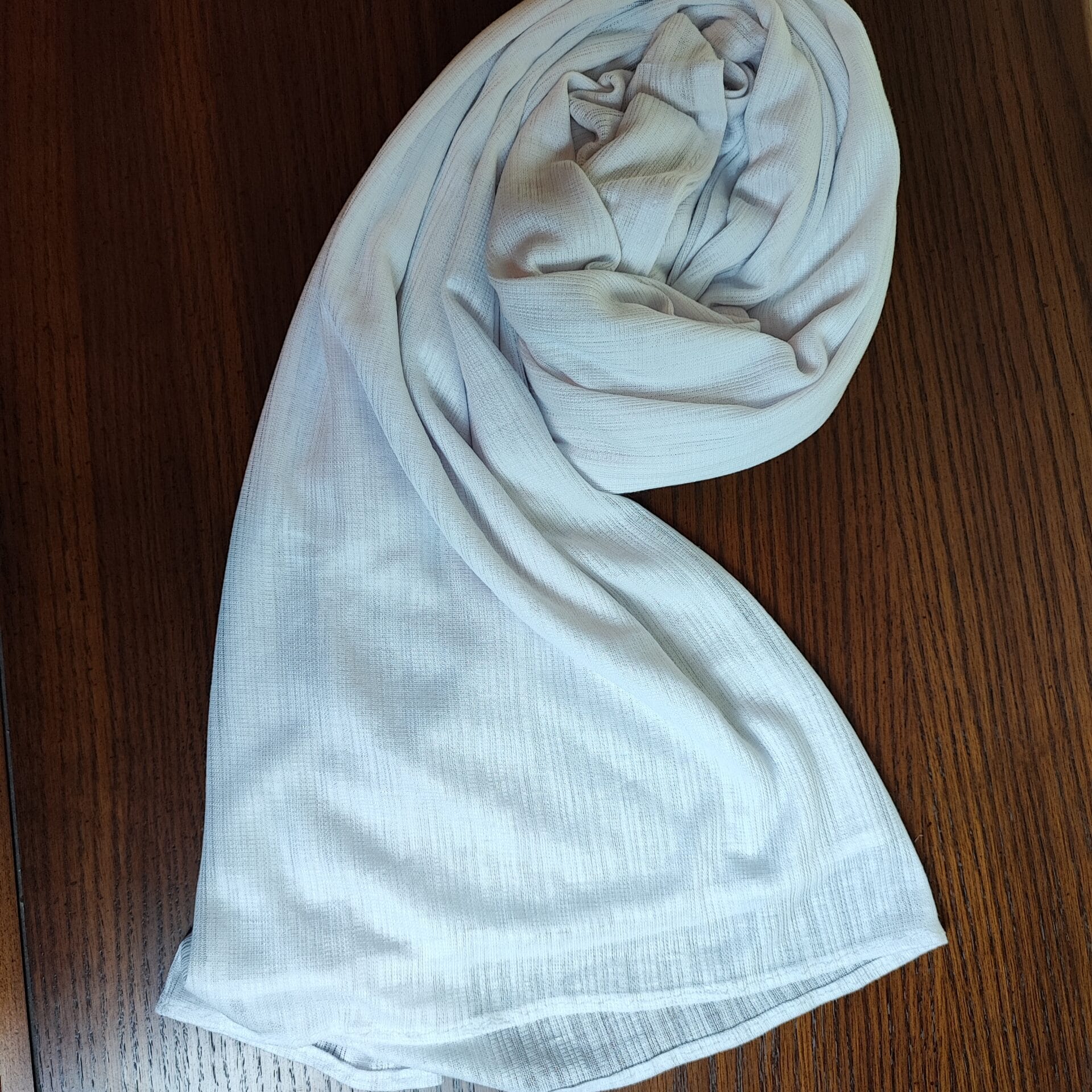 Soft, lightweight pleated hijab/shawl with a subtle ribbed texture and a clean front wrap; versatile for everyday wear.