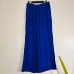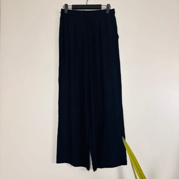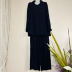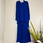 This two-piece ensemble features a loose, button-front tunic with a relaxed collar and long sleeves paired with flowing, high-waisted wide-leg pants. Available in 2 colors, it offers comfort and coverage with a contemporary, relaxed silhouette—perfect for casual days or dressed-up occasions.